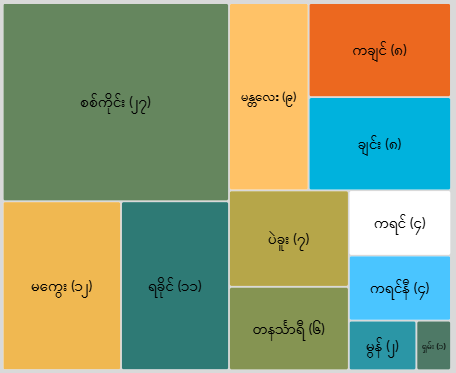 တိုင်းဒေသကြီးနှင့်ပြည်နယ်အလိုက် လေကြောင်းတိုက်ခိုက်ခံခဲ့ရသော အကြိမ်အရေအတွက်