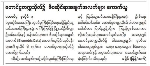 The junta’s state media report on collecting biometric data at Kyunsu township of Tanintharyi region.