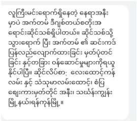 The junta has conducted more distinct oppression of freedom of expression and media freedom in June 2023. On June 10, the military council stripped the Ayeyarwaddy Times news agency of its business license. The total number of people arrested for opposing the junta through their online posts was 50 within one week, from June 14 to 21, according to the military’s announcement. According to RFA’s data based on the announcements of the military, at least 1,050 people were arrested for writing and sharing posts that oppose the military on social media networks such as Facebook, TikTok and Telegram channels.