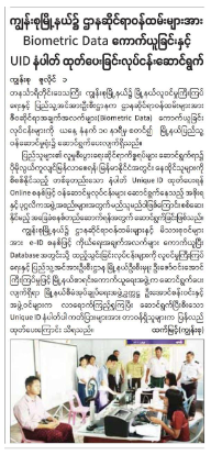 On July 24, 2,400 people were issued unique IDs after the collection of biometric data in Naung Oo township, Mandalay region, according to the media announcement.