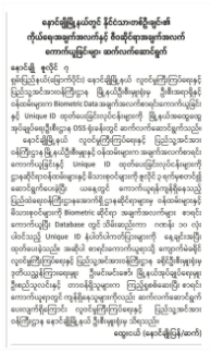 On July 14, biometric data was collected from individuals in Myeik town using enrollment devices, and unique IDs with QR codes were issued. According to the state media announcement on July 15, more than 900 unique IDs were issued. Myanmar refugees in Mizoram were also undergoing the biometric data collection process by the Mizoram authorities and civil society organisations.